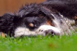 Die neunjährige Berner Sennenhündin Sandria, genannt Sanny, genießt ihr Leben.